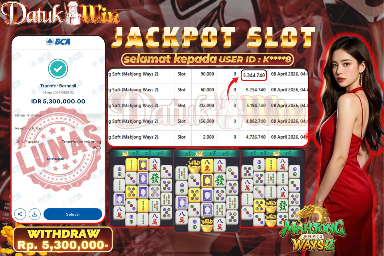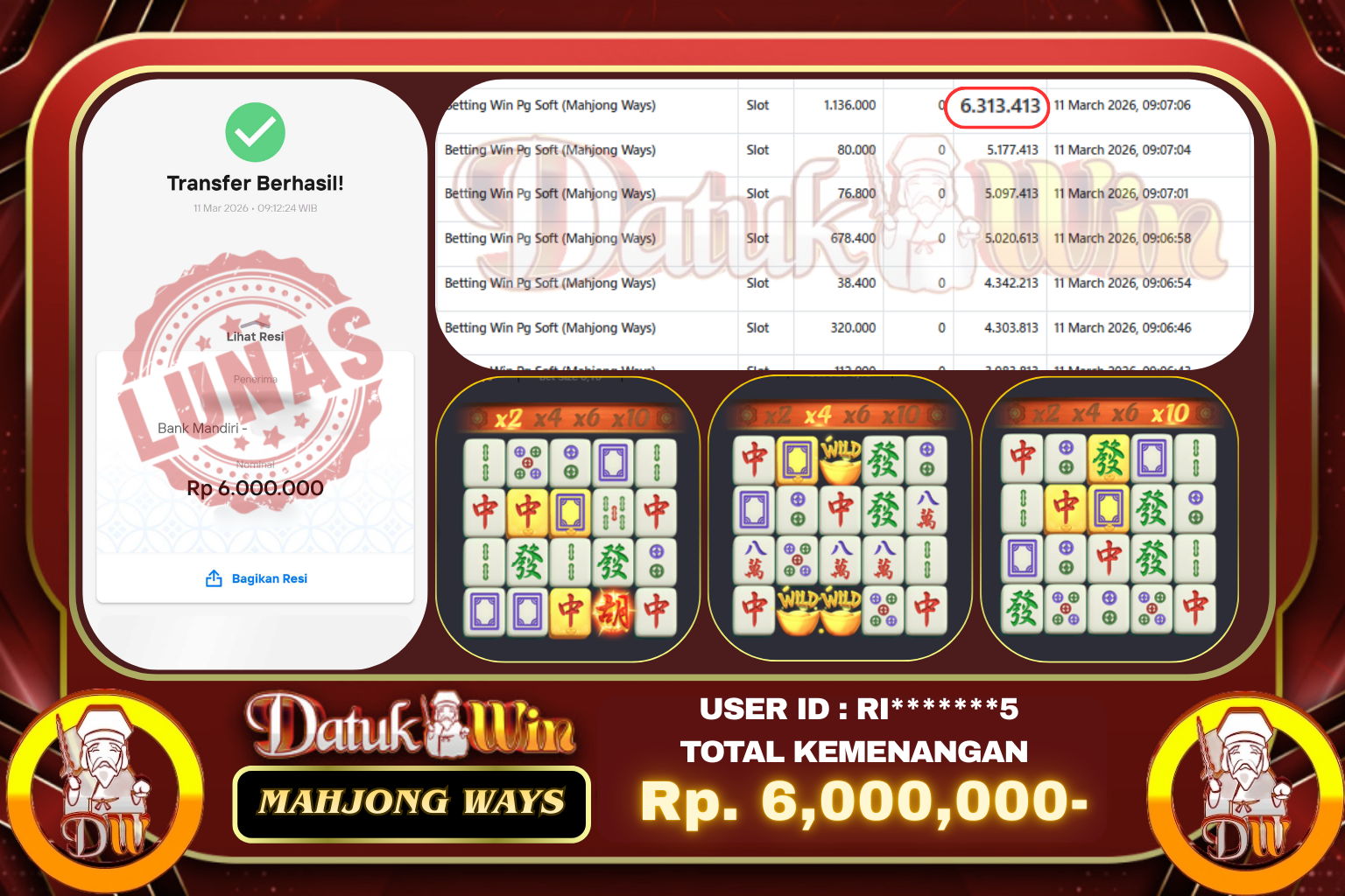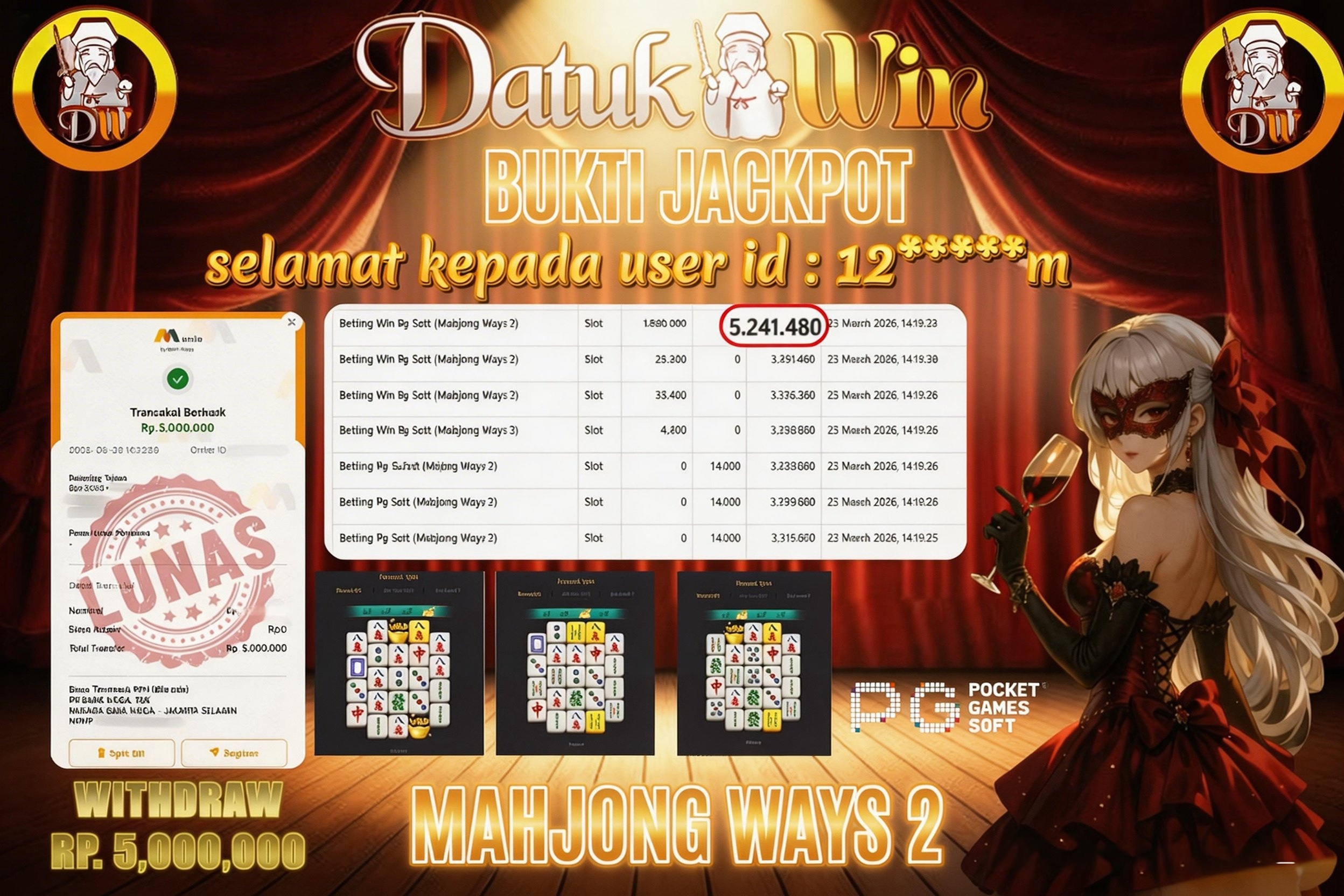 Bukti Pembayaran Jackpot 02 MARET 2026 – DATUKWIN