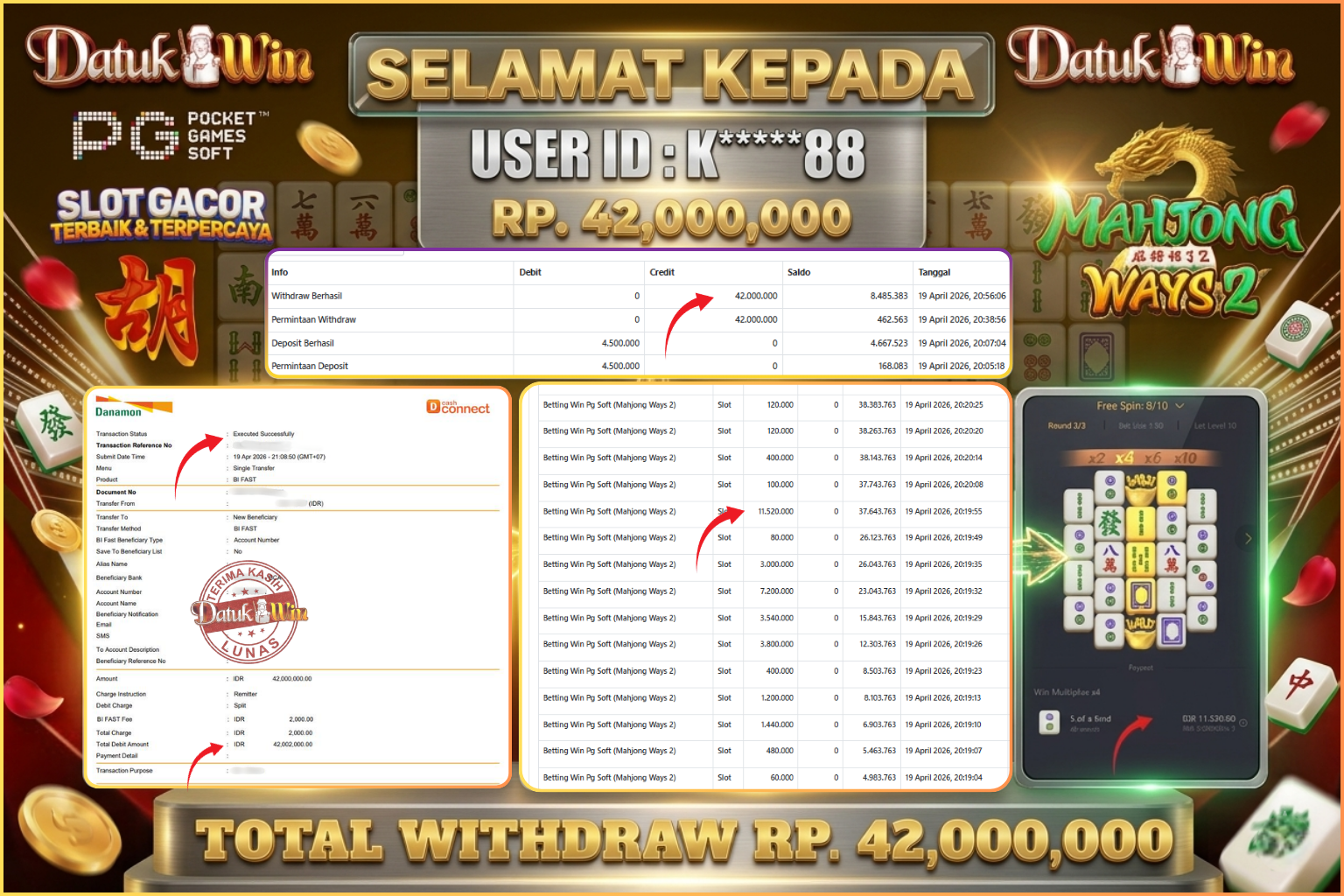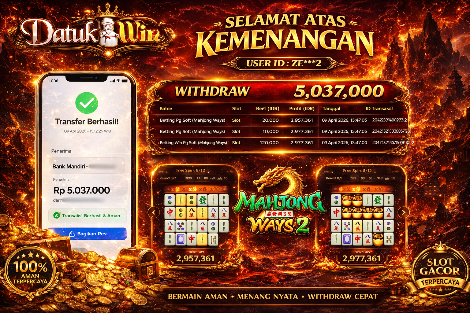Salah satu keunggulan dari situs DATUKWIN adalah bukti pembayaran yang jelas dan terbuka. Setiap transaksi keuangan, baik deposit maupun penarikan, dicatat secara sistematis dan dapat diakses oleh pengguna. Hal ini memberikan rasa aman bagi pemain, karena mereka dapat memverifikasi setiap pembayaran yang dilakukan. Selain itu, adanya sistem keamanan yang ketat menjamin bahwa data pribadi dan keuangan para pemain dilindungi dengan baik.