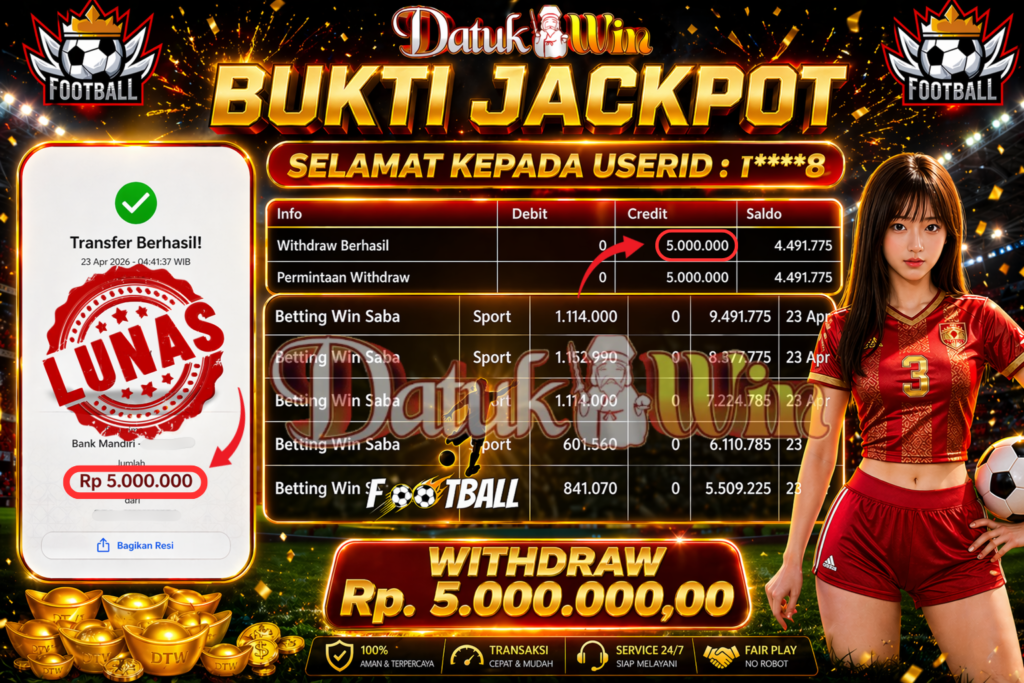 Salah satu keunggulan dari situs DATUKWIN adalah bukti pembayaran yang jelas dan terbuka. Setiap transaksi keuangan, baik deposit maupun penarikan, dicatat secara sistematis dan dapat diakses oleh pengguna. Hal ini memberikan rasa aman bagi pemain, karena mereka dapat memverifikasi setiap pembayaran yang dilakukan. Selain itu, adanya sistem keamanan yang ketat menjamin bahwa data pribadi dan keuangan para pemain dilindungi dengan baik.