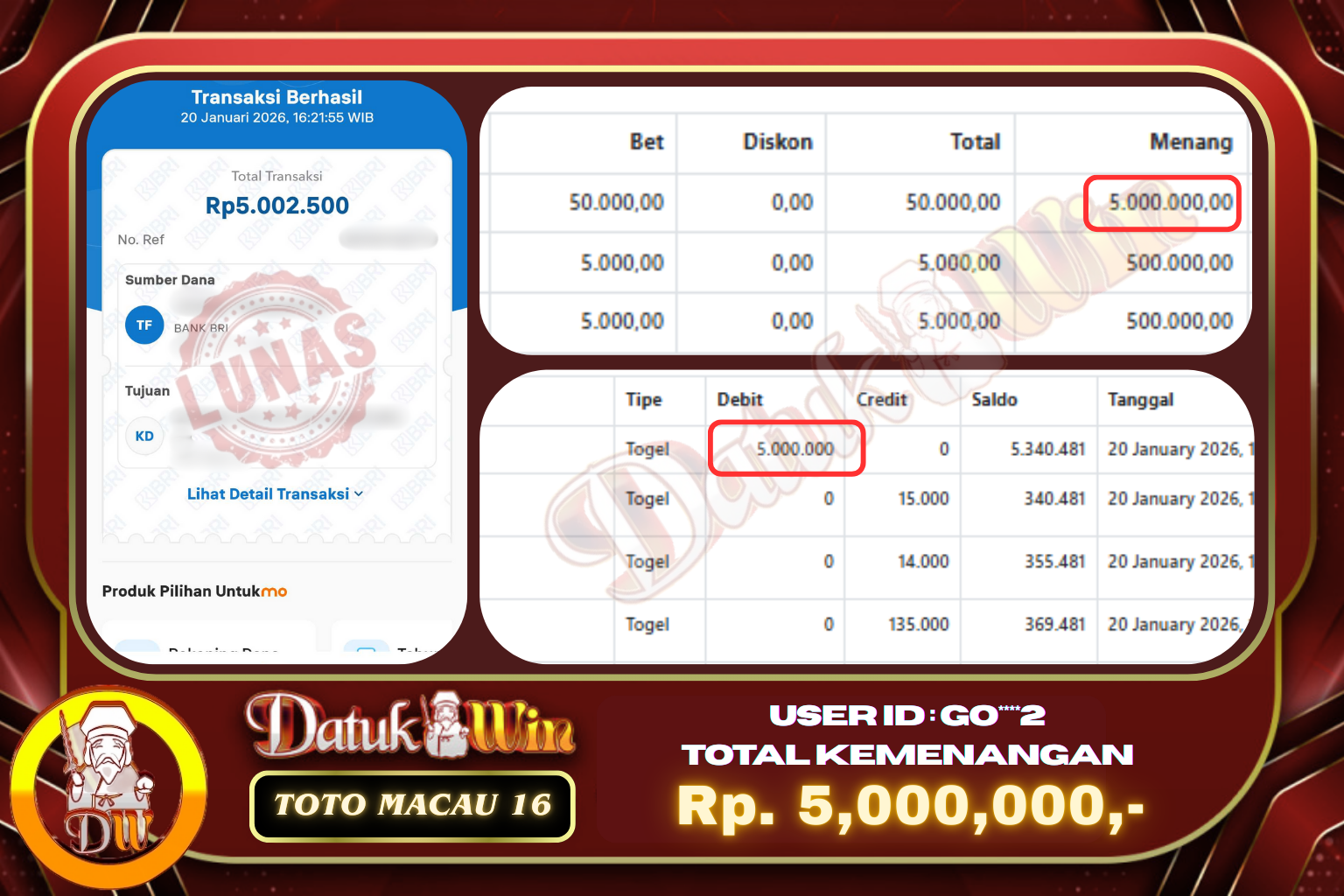 Salah satu keunggulan dari situs DATUKWIN adalah bukti pembayaran yang jelas dan terbuka. Setiap transaksi keuangan, baik deposit maupun penarikan, dicatat secara sistematis dan dapat diakses oleh pengguna. Hal ini memberikan rasa aman bagi pemain, karena mereka dapat memverifikasi setiap pembayaran yang dilakukan. Selain itu, adanya sistem keamanan yang ketat menjamin bahwa data pribadi dan keuangan para pemain dilindungi dengan baik.